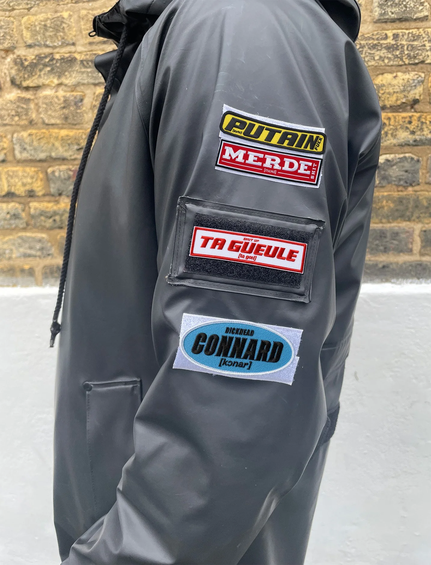 Learning a new language is trendy, but sometimes we don’t get useful words in the apps so I created velcro patches to start conversation with useful words while staying fashionable.